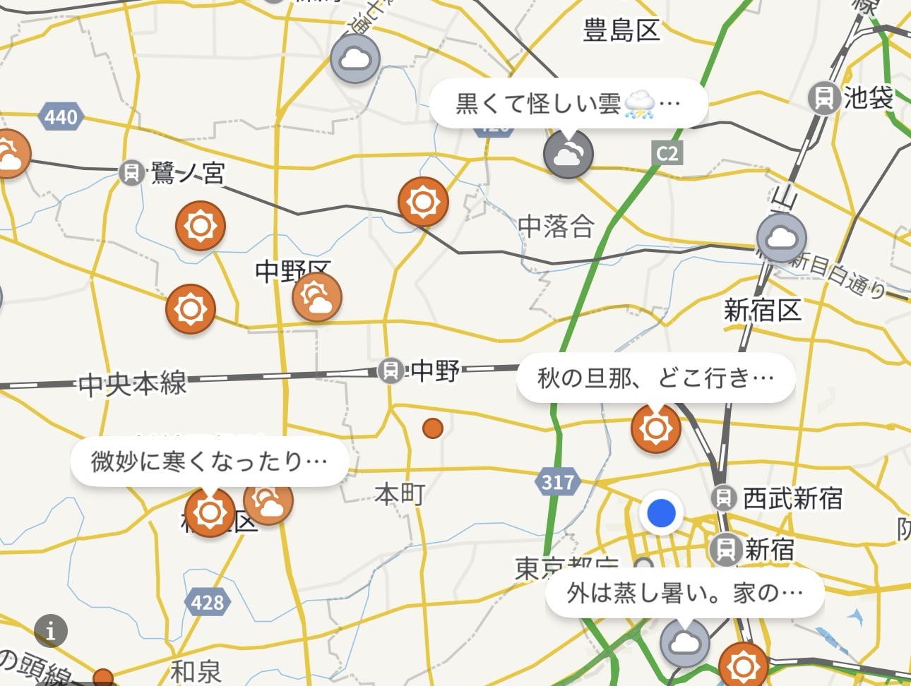 - ゲリラ豪雨や大雪などの状況共有: 突然の強い雨や雪の様子を写真で投稿することで、他のユーザーにいち早く現地の状況を伝えることができます。