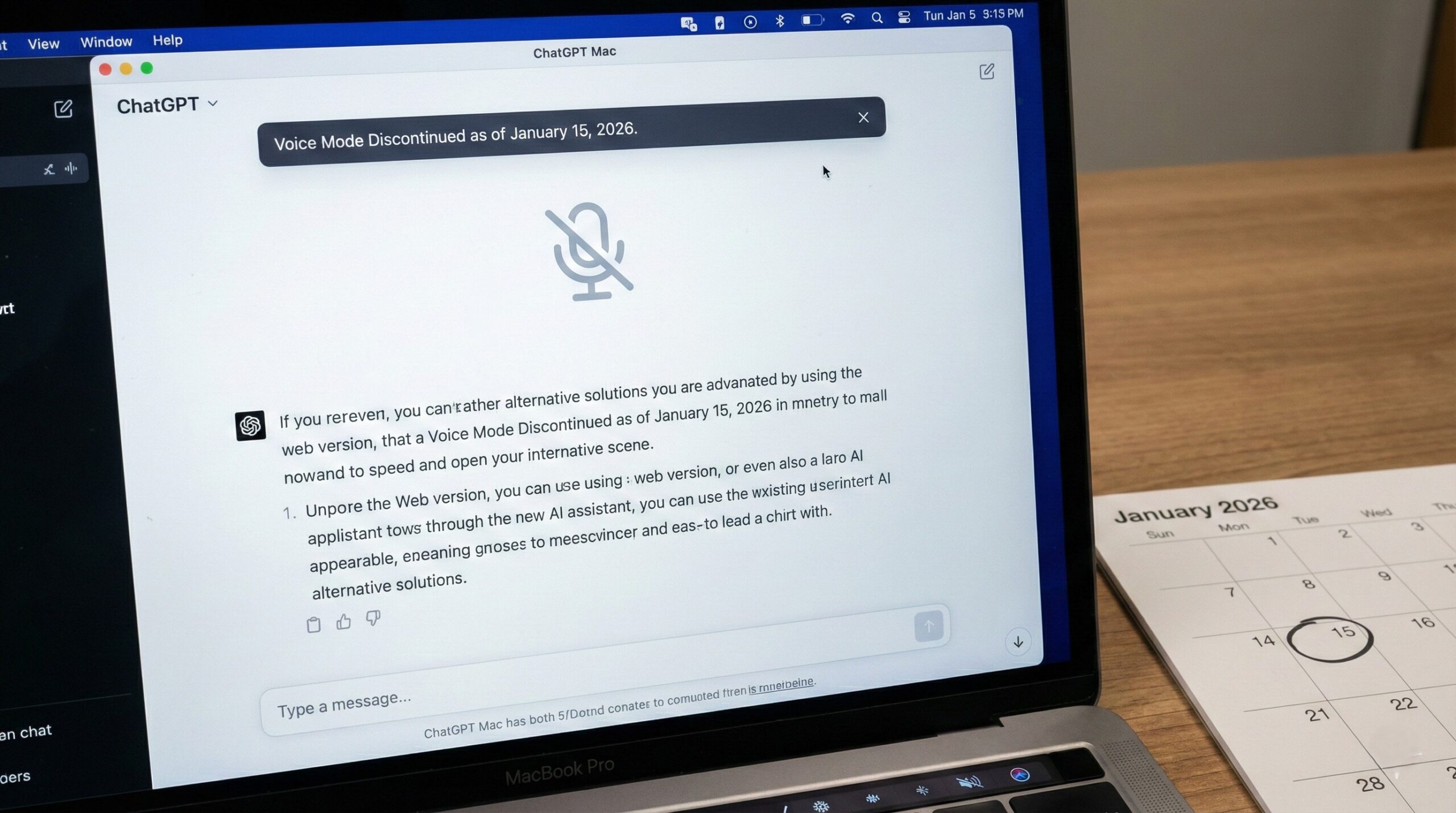 OpenAIは、ChatGPTのmacOSデスクトップアプリで提供されている「音声機能」を、2026年1月15日をもって終了することを発表しました。