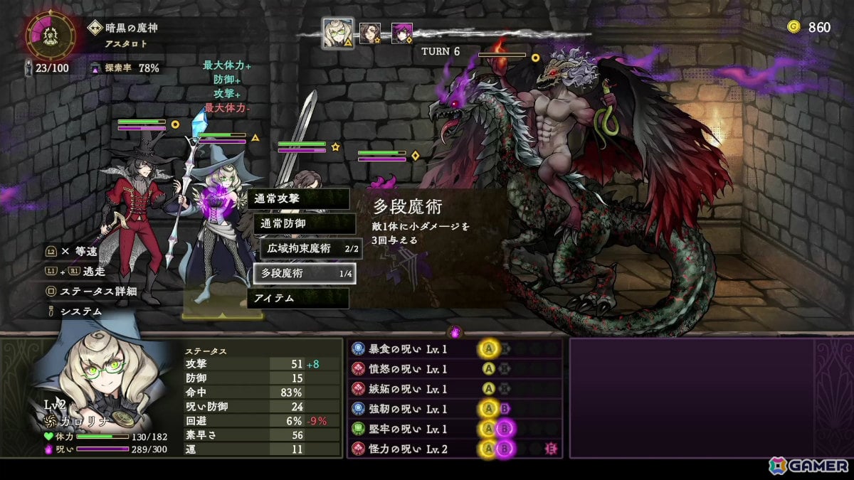 ダンジョン探索では、様々な呪いがキャラクターの能力や行動に影響を与え、予測不能な状況を生み出します。幾度となく立ちはだかる試練に対し、プレイヤーはトライ&エラーを重ねながら試行錯誤を繰り返し、自分だけの攻略法を見出していくことが求められるでしょう。