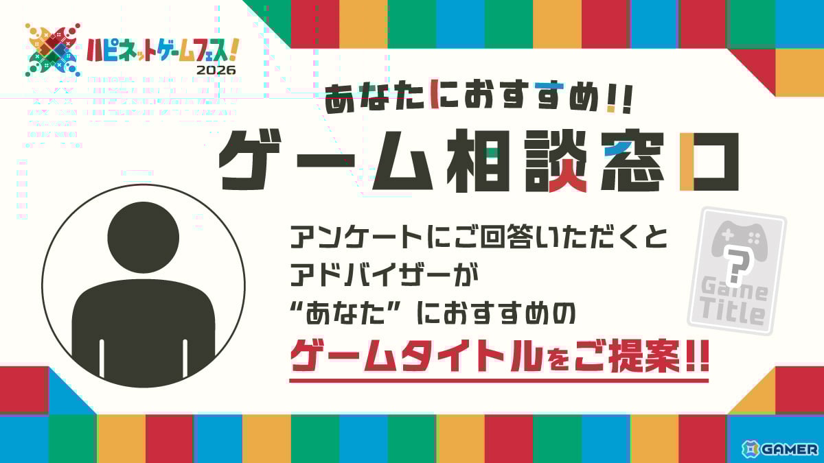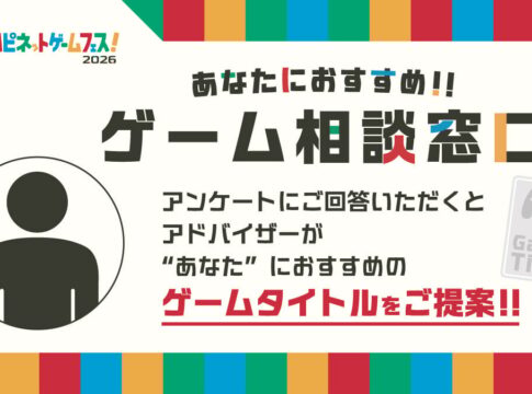 イベント会場内には、来場者一人ひとりにぴったりのゲームを提案する「ゲーム相談窓口」が設置されます。本イベントに出展する多数のゲームの中から、アドバイザーがアンケートの回答結果を基に、おすすめのゲームを記載した「おすすめゲームカード」を渡してくれる企画です。