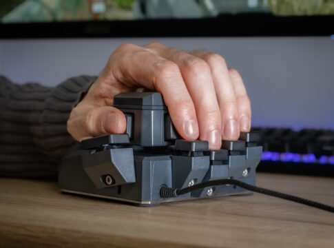 このデバイスは、単なる移動入力装置にとどまらず、親指で操作できる10個の物理ボタンを搭載した“片手用ハイブリッド・ジョイスティック”として設計されています。これにより、移動と同時に複雑なアクションやスキル発動を片手で完結させることが可能となり、もう一方の手をマウス操作や他のデバイスに集中させるといった、これまでにないプレイスタイルが生まれる可能性を秘めています。