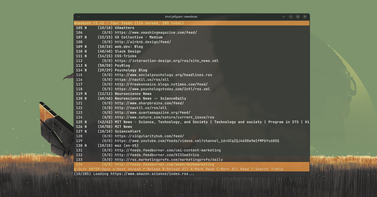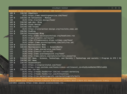 newsboatは、シンプルながらも強力なターミナルRSSリーダーです。ウェブサイトのRSSリンクをテキストファイルにまとめ、それをnewsboatに読み込ませるだけで、最新の記事がフィードに表示されます。キーボードショートカットで簡単にナビゲートでき、矢印キーでスクロール、Enterキーで記事を読み、’r’で更新、’o’でブラウザで開く、’s’で記事をテキストファイルとして保存できます。広告やトラッキングから完全に解放された、クリーンなニュース体験は、情報収集の質を格段に向上させるでしょう。