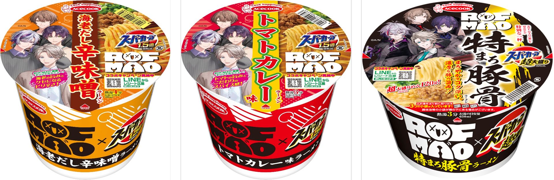VTuberユニット「ROF-MAO」考案!エースコック「スーパーカップ」コラボ第2弾、3種の限定ラーメンが登場