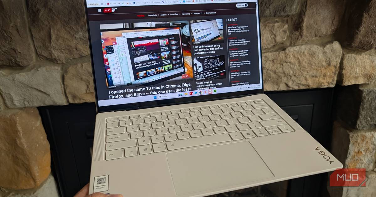 複数の生産性アプリや多数のChromeタブを開いた状態での実測では、約5時間のバッテリー駆動時間となりました。これは、8時間以上のバッテリーライフを提供するApple製ラップトップやARMベースのWindowsラップトップと比較すると、やや物足りない結果です。一日中電源なしで作業するには、心許ないかもしれません。